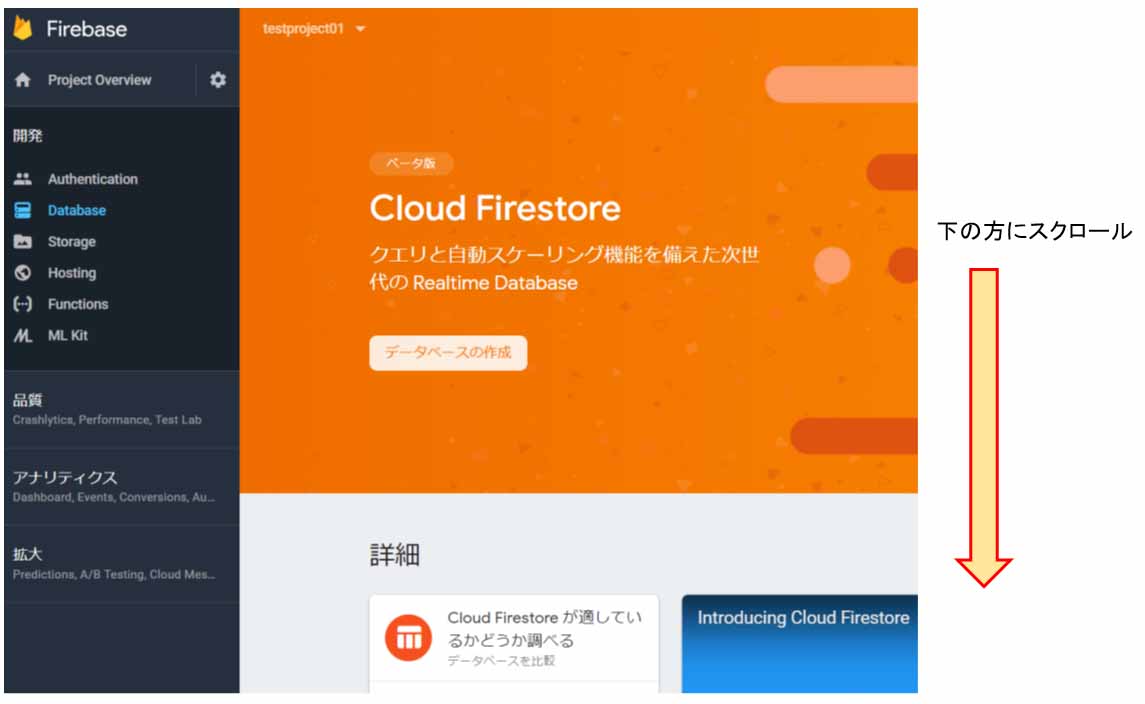 Cloud Firestore というのは、Realtime Database の進化したものですが、まだベータ版なので今回は使いません。