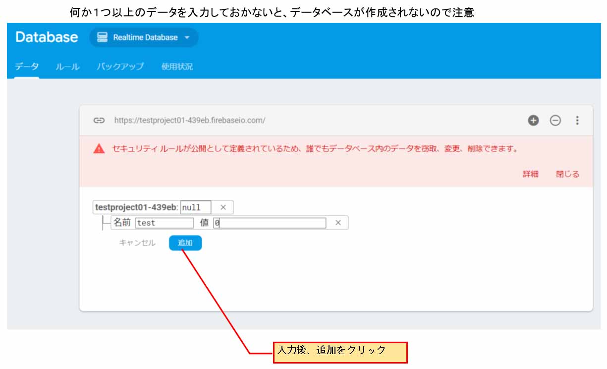 4.Realtime Database の作成
