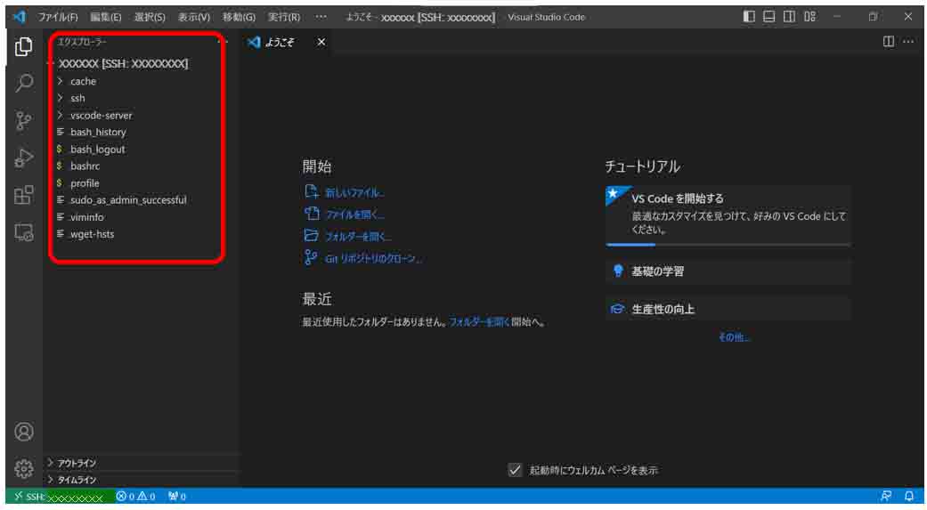 まず、/home/ユーザー名 ディレクトリに、.bash_profile 又は.profile 又は.bashrc というファイルが有るかVSCodeのSSHリモートエクスプローラーで探します。